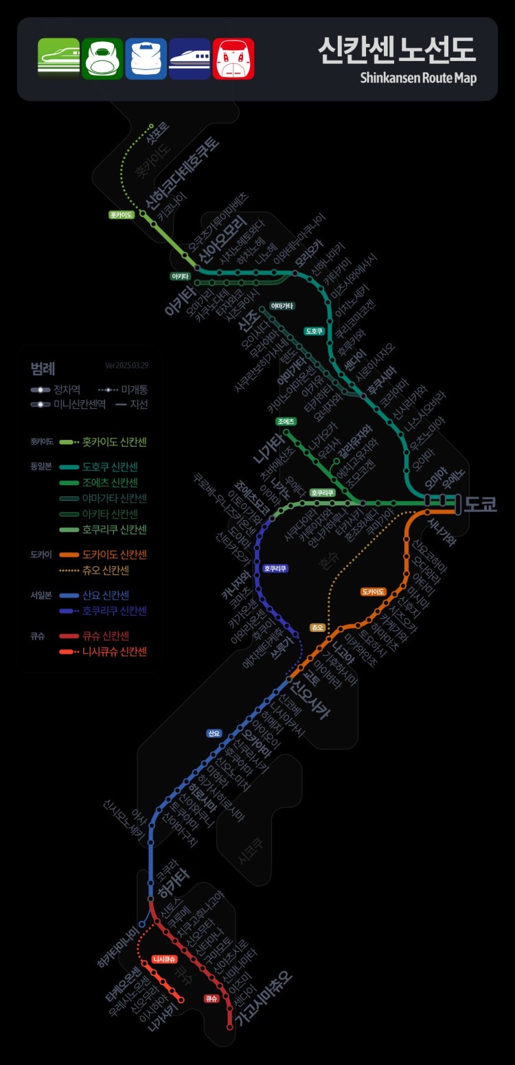 신칸센 노선의 전체 정보는 아래 사진을 참고 바랍니다.